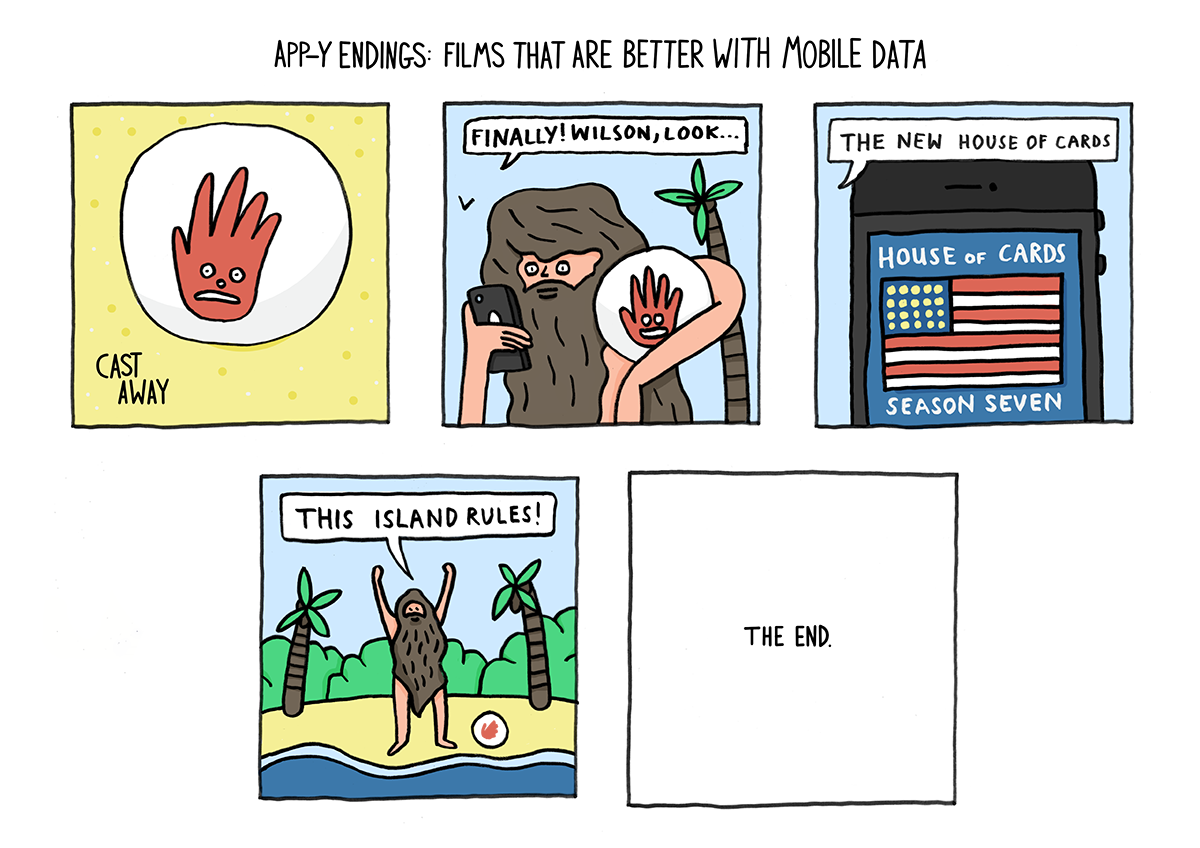 In each case, whether it's trekking to Mount Doom with the help of Google Maps or surviving as a cast away thanks to Netflix access, smartphones make short work of any problems the characters encounter. Explore the full series of comics below, but be careful that there could be spoilers ahead.