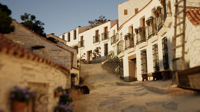 If you refer to the tutorial video above, you'll see an example of creating a modular Spanish village with houses featuring rough walls made of unsculpted rocks, subsequently whitewashed for a realistic texture. To replicate this, download the modular elements of 'Spanish modular village houses' on Sketchfab. Activate the Nanite properties within the material settings, adjusting options like 'Used with Nanite' and 'Enable Tessellation'. This transformation converts detailed textures, including ambient occlusion maps, into actual volumes within the 3D model. The result is a surface rich in detail, with defined edges that enhance the visual immersion of the village or city you're creating.