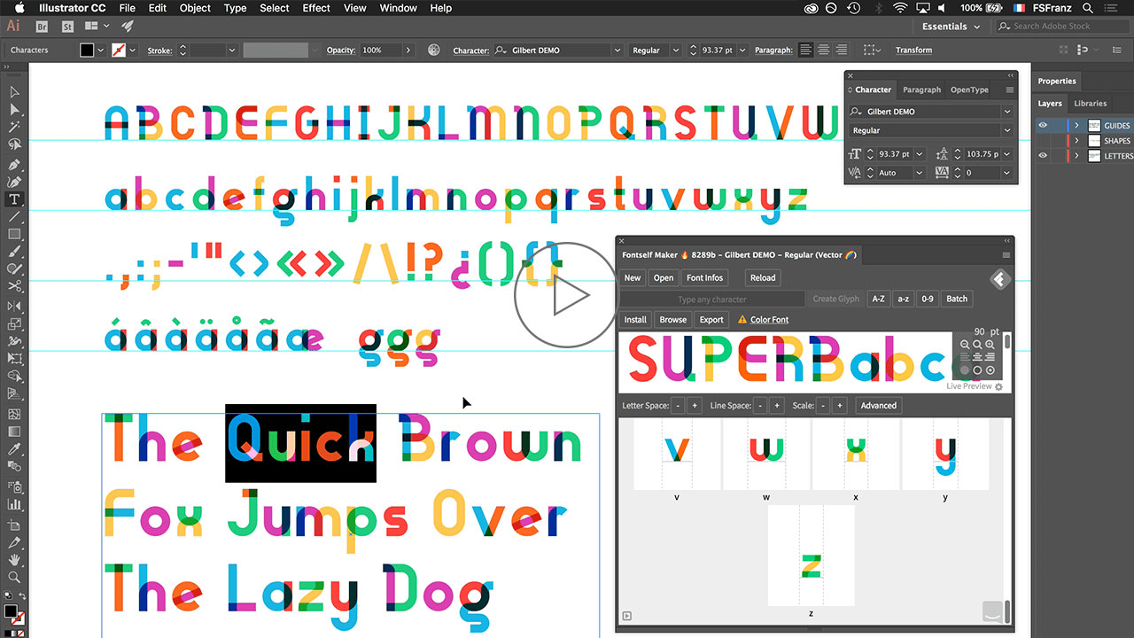 What Fontself Maker is excellent at doing, however, is converting lettering – created in Photoshop or Illustrator CC – into a workable OpenType display font. Simply drag and drop layers to create different characters.