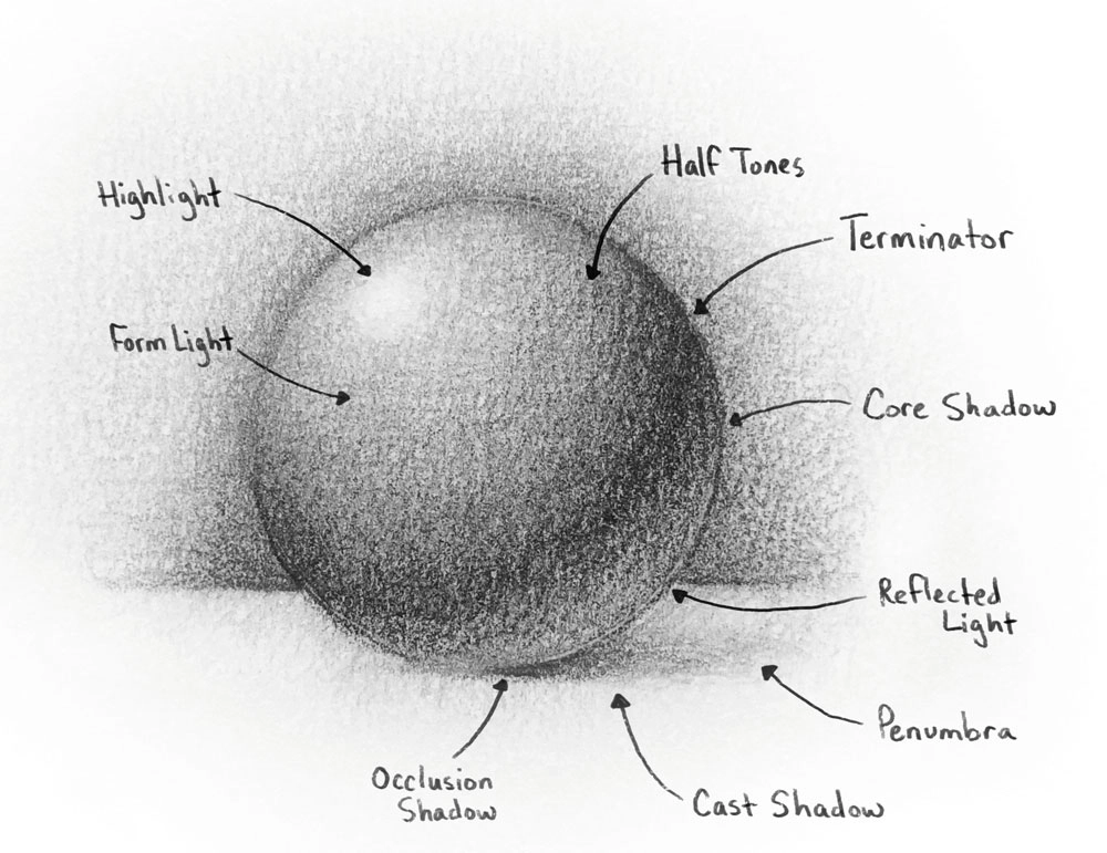 Take the time to understand how lighting works and the values it creates to shade properly. Do studies, find references and resources that provide this insight, and then apply that knowledge in your practice pieces. There's a range of value to work with, not just dark and light. For more on values, see our everything you need to know about tonal values piece.