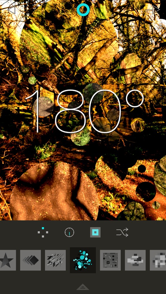 You either snap a picture or grab one from your photo stream, and then you can go to work on the effects. We've found that the best way to get a feeling for what Fragment can do is simply tap the Shuffle button, which will add a random pattern with random settings to your image, and then keep tapping until something show up that you like the look of.