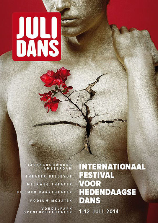 Julidans is the International Festival for Contemporary Dance, held annually in July in seven different theatres in Amsterdam (Netherlands). Because it's contemporary dance, the look and feel has to be contemporary too. So every year, Julidans looks for a different lead image. This has to be attractive and eye-catching, but also has to represent the festival's values and missions. It's a challenge.