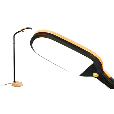 This beautiful looking LED floor lamp comes in black or silver. While it only has a colour temperature of 3000 Kelvin, the Leaf is well made and has a wonderful swing that makes it useful for lighting details when needed and folding away when not required. It does light at 1150 lumens, so it is bright even if the light is 'yellow' rather than bright white.