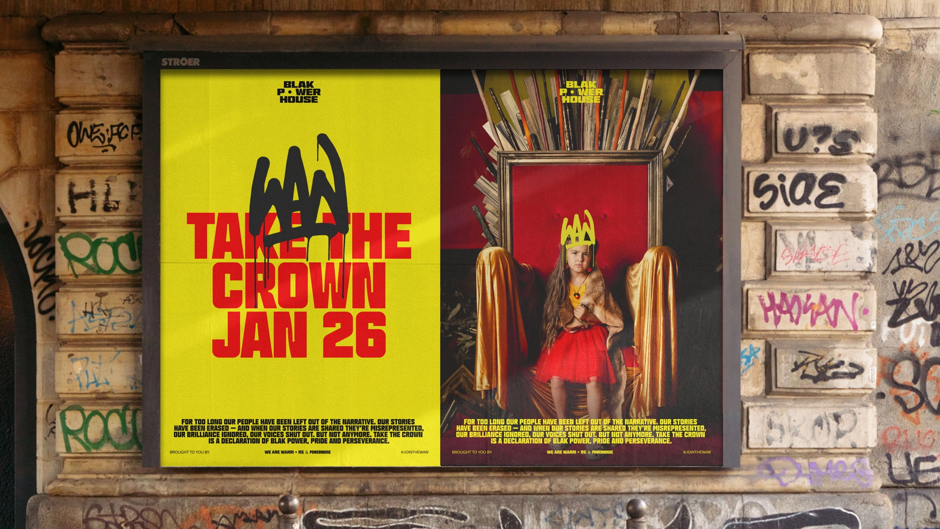 Take the Crown was designed to be instantly impactful, it’s a simple, commanding, rebellious call-to-action that resonates immediately.