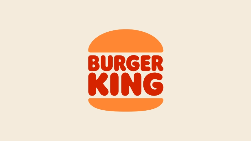 Gone is our friend the King, gone is the photograph of the burger, gone is any concrete indication that we’re entering the home of the Whopper. We’re in minimalist country now – just the two words ‘Burger King’ in a jaunty bubble font that sands away the sharp corners of the previous wordmark. The words are styled in a meaty red, and in a truly inspired touch, they are encased inside the two halves of a golden bun, drawn as simply as possible in two wedge shapes.