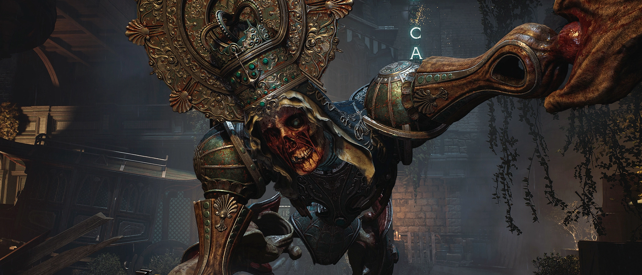 The sea-themed district is a particular highlight. There’s a theatricality to it, creaking docks, brine-stained statues, velvet-draped interiors lit by jaundiced lamplight. You’re constantly aware of the ocean just out of sight, a presence rather than a backdrop. Crisol understands that horror often lives in implication. Doors are barred, alleyways kink at odd angles, and the world invites you to poke around, and crucially, it rewards you for doing so – not greatly, there aren't collectables in every nook, but emotionally, as the world bears down.