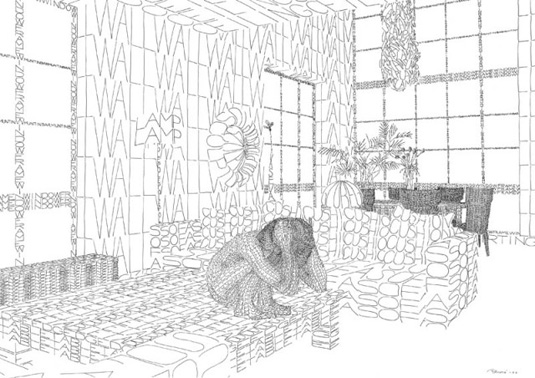 We're in awe of the patience and skill needed to complete an illustration project such as this. Just take a look at the likes of 'tapestry' placed within the drawing - the words are so small, yet they make an instant impact.