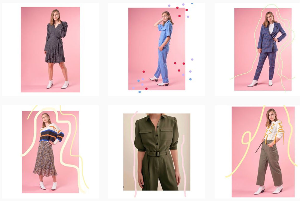 This account from women’s clothing line Femme and Fierce shows how even the most simplistic effect can create a consistent and recognisable visual identity. Using little more than background colour and interventions around the figures of models and the clothes they’re wearing, it creates something that can be recognised as a brand style.