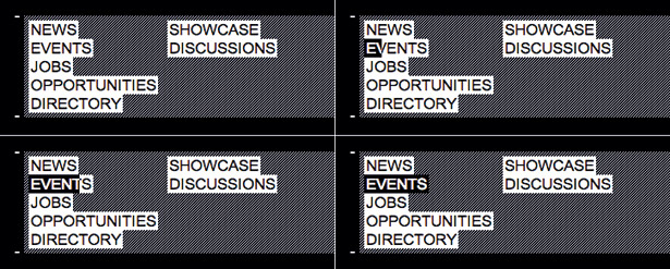 It’s simple, straightforward and semantic: link, in a list item, in a list. As this animation is going in the main nav of the site and I’m using HTML5, this list is going to live in a <nav> element within a <header> – the intention being that it’s site-wide.