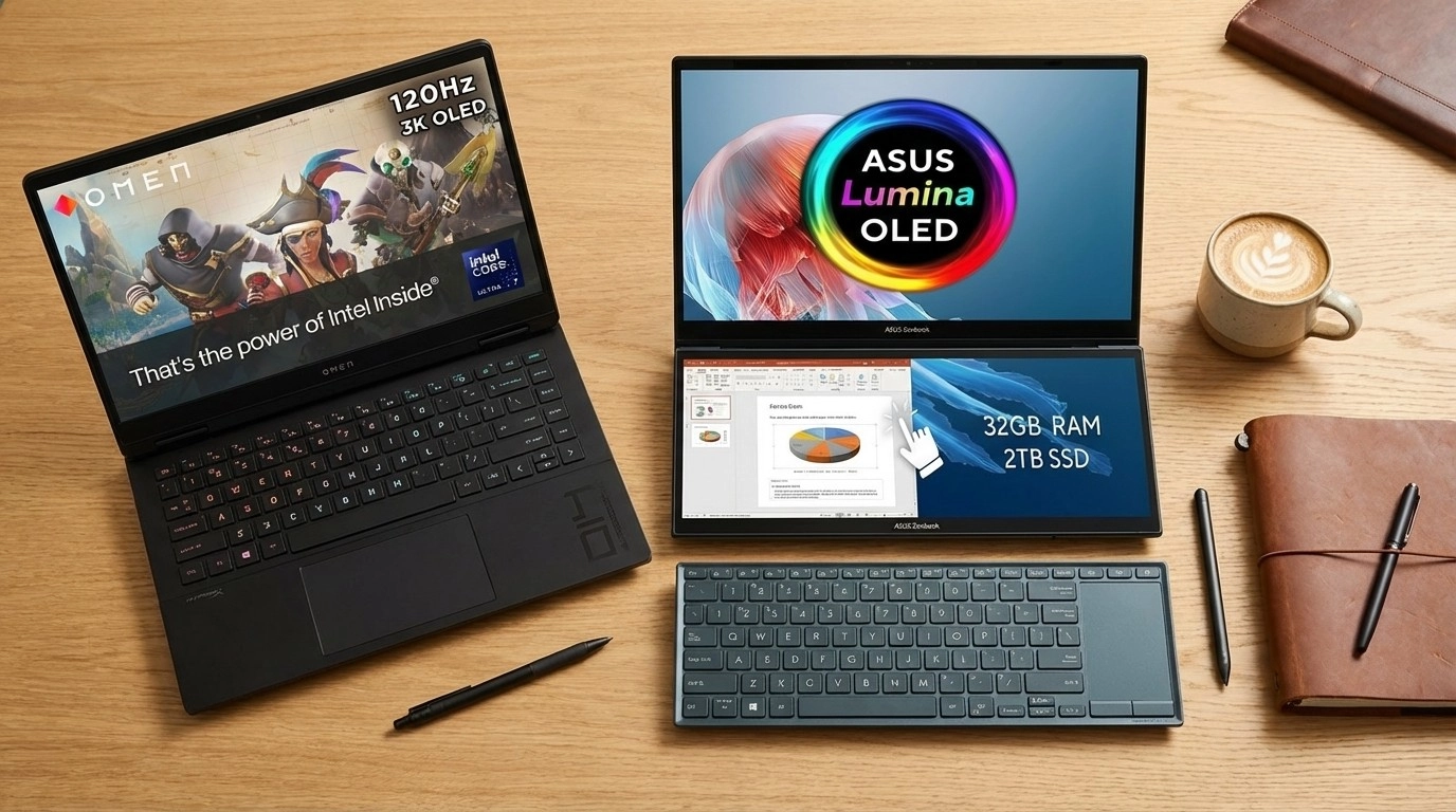 At the top end, the MacBook Pro 14-inch (M4) remains a go-to for designers and photographers who prioritise colour accuracy, battery life and a refined creative workflow, while the ASUS Zenbook Duo is ideal for multitaskers who thrive on extra screen space. If you need serious graphics power, the OMEN Transcend 14 and Gigabyte AORUS Master 16 deliver desktop-class performance for 3D, video and gaming, while the MSI Prestige A16 AI+ and HP OmniBook 5 round out the list with excellent value options for productivity-focused creatives and students.