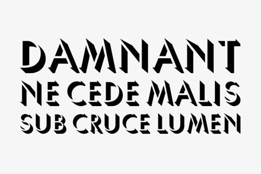 Today's font of choice is sans serif font Umbra from font shop URW++. Originally designed in 1935 by R. Hunter Middleton, this typeface is an adaptation of the uppercase set of his earlier Tempo Light. Described on YouWorkForThem, "Umbra refers to its shadow effect, in which the actual letter shape consists of negative space and is defined solely by its black dimensional shadow."