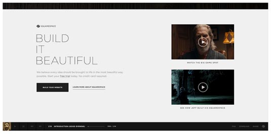 With their fine eye for visuals, the landing page for the website-building firm Squarespace flaunts their skills on the very face of their site, with visual consistency in UI elements, playful typography, and rich colours.