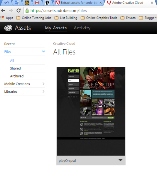 Once you do, sign into Creative Cloud click on Open Folder and copy the playOn.psd file into this directory and let the program sync it to the cloud.
