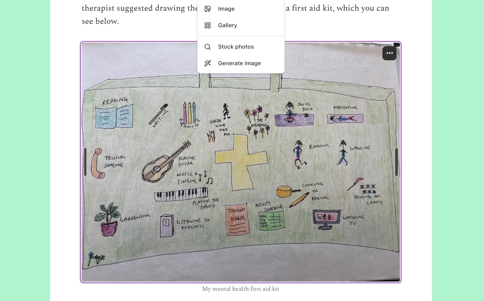 I assumed that I would have a gallery of my own photos within Substack, where I could just add ones that I'd already uploaded, but no. I didn't have the image I wanted saved on my computer so I had to find my original post, save the image and then reupload it, which felt like an unnecessary step. An image library would fix that.